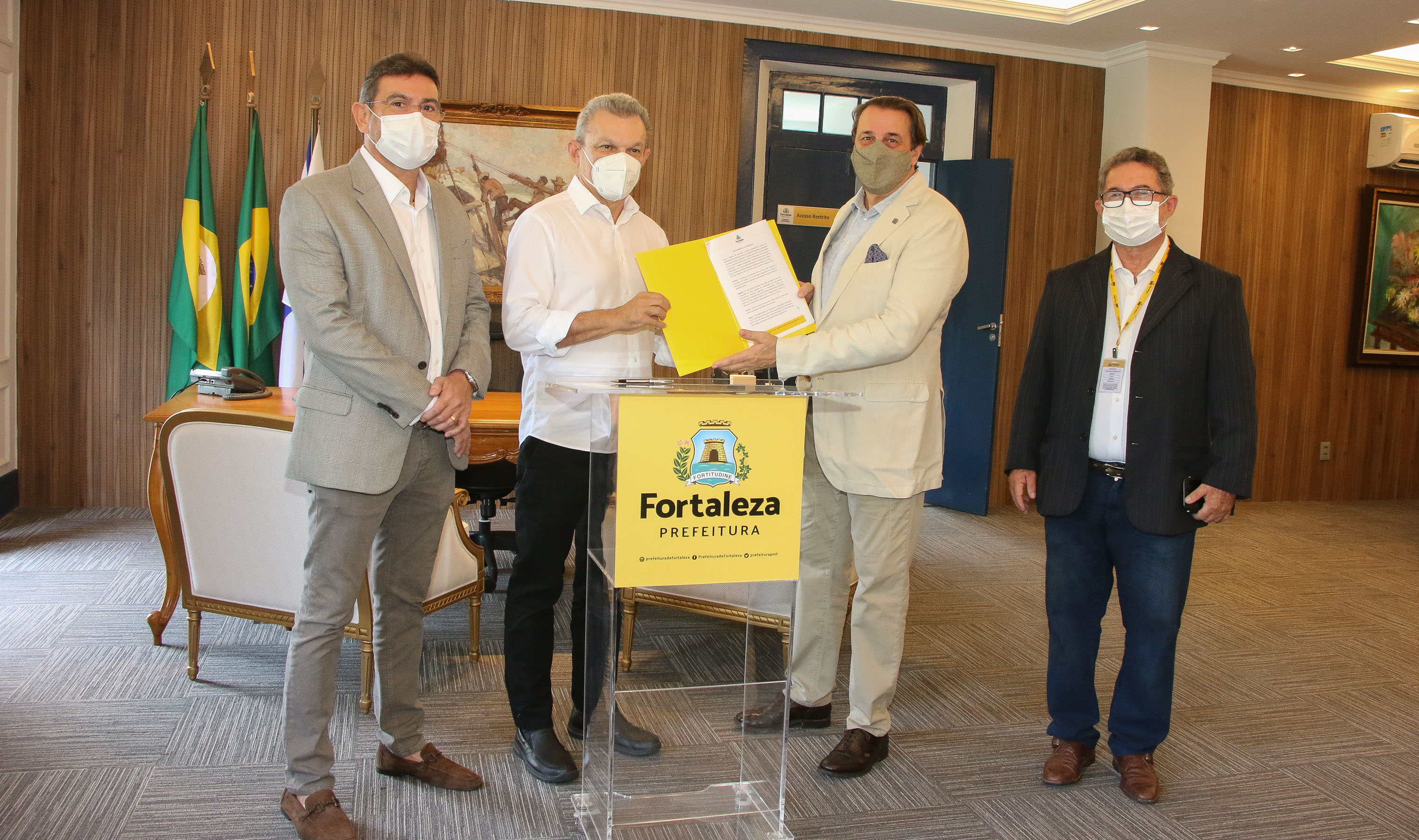 A Prefeitura de Fortaleza assinou, na tarde desta terça-feira (15/02), um memorando de entendimento com a província de Cúneo, na Itália. A iniciativa visa promover uma troca de conhecimentos e experiências entre as duas cidades, em diversas áreas, como turismo, cultura, empreendedorismo, ensino e até enogastronomia. Além do prefeito José Sarto, participaram da cerimônia o secretário do Turismo de Fortaleza, Alexandre Pereira, e o cônsul honorário da Itália, Vittorio Ghia.