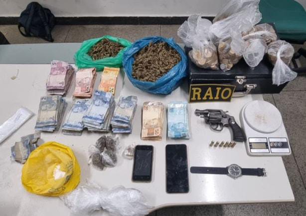 Ao se aproximarem da residência, um indivíduo correu para dentro da casa e arremessou pelo quintal uma mochila contendo drogas, dinheiro e um revólver calibre .38. Ao tentar pular o muro, o suspeito foi impedido e preso pelas equipes envolvidas na operação.