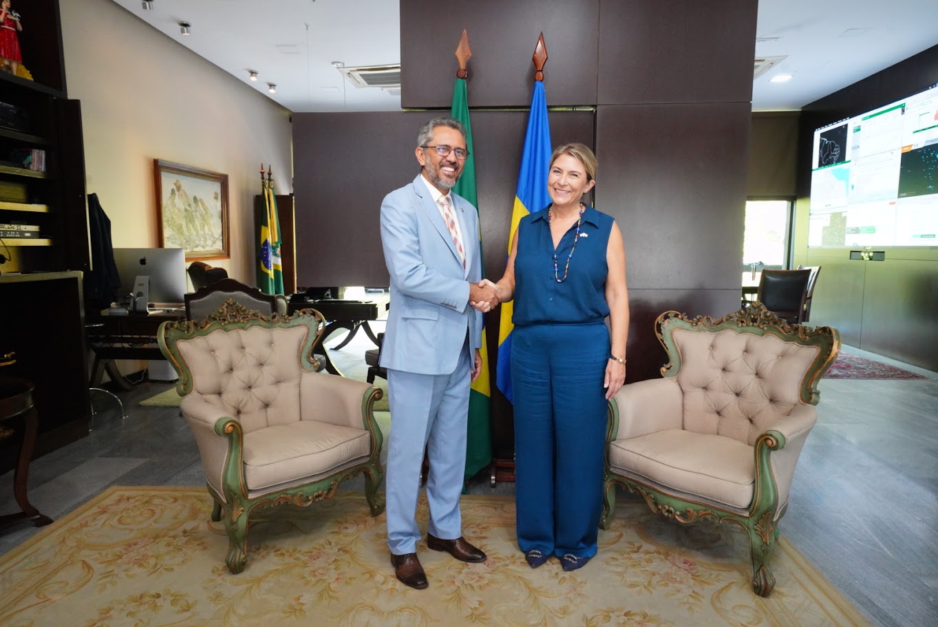 Na tarde desta terça-feira (28), o governador Elmano de Freitas recebeu, no Palácio da Abolição, em Fortaleza, a embaixadora da Suécia no Brasil, Karin Wallensteen, e representantes da empresa sueca Anodox Brasil, em visita institucional. Durante o encontro, foi assinado um Memorando de Entendimento (MOU) entre o Governo do Ceará e a companhia, fortalecendo a parceria entre o Estado e o país europeu.