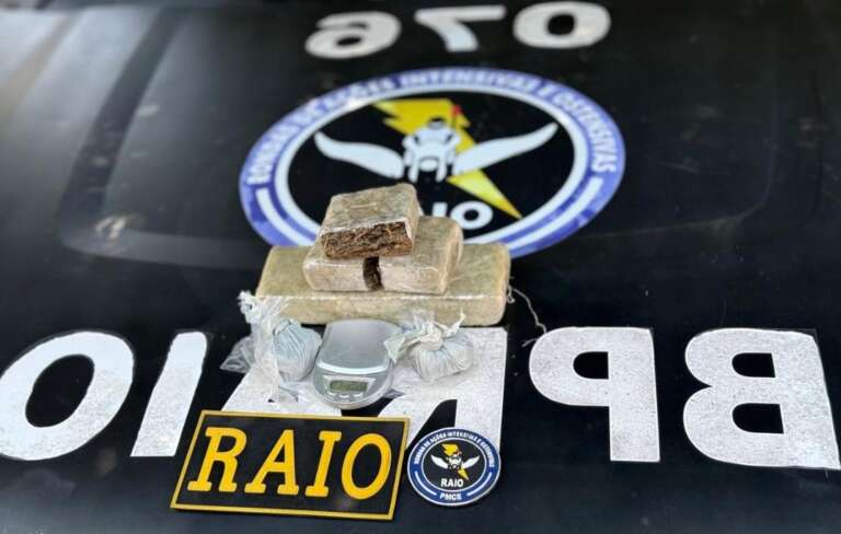 A ação ocorreu após informações anônimas relatando que um homem apontado na denúncia estaria comercializando entorpecentes em uma residência do bairro Araçá. Diante das informações, uma equipe do Comando de Policiamento de Rondas de Ações Intensivas e Ostensivas (CPRaio) deslocou-se ao endereço e foi recebida pelo morador do imóvel. Durante a busca, os militares encontraram, em uma despensa nos fundos da casa, uma quantidade de maconha e uma balança de precisão, além de um aparelho celular.