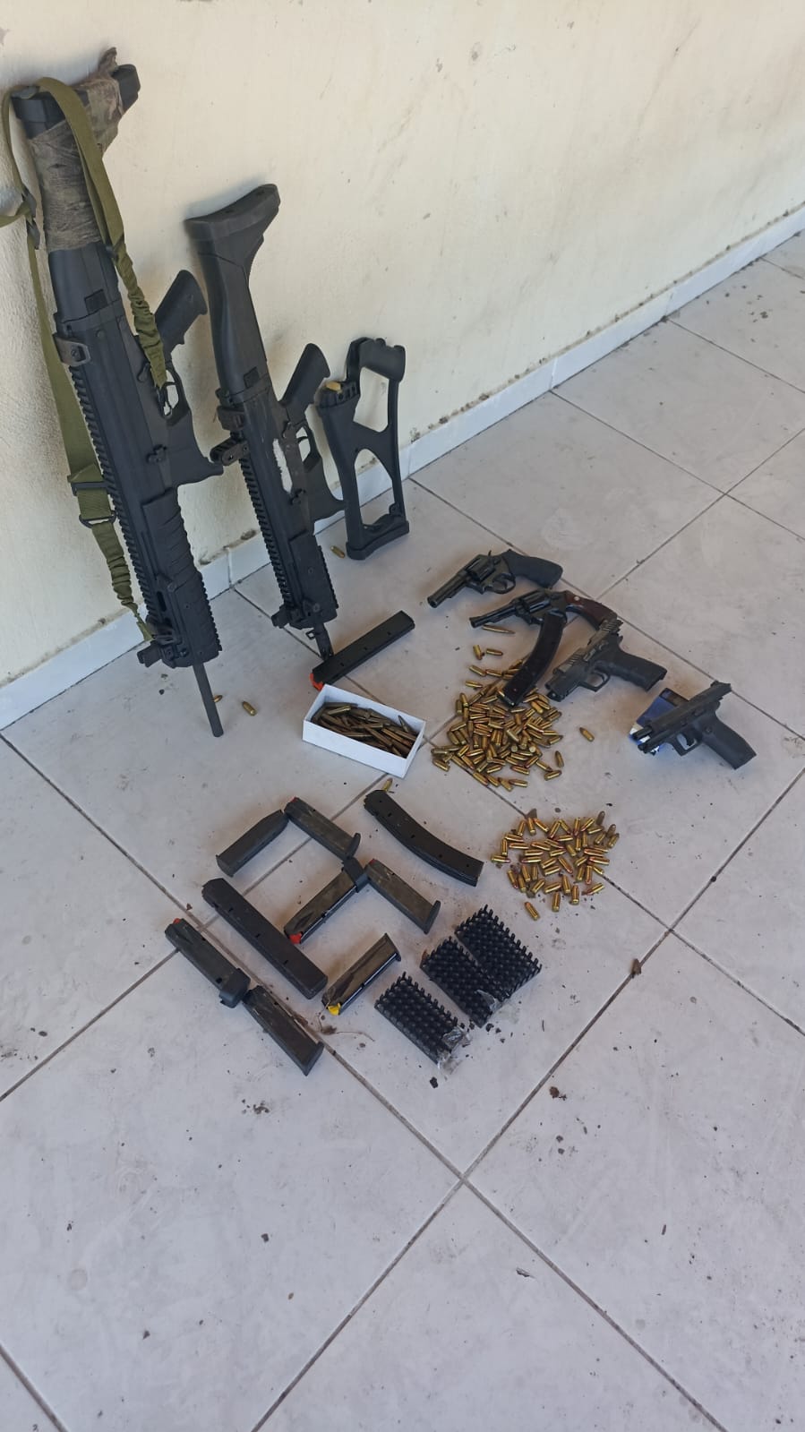 Equipes da Delegacia de Polícia Civil de Itapipoca encontraram, escondidas, dentro de uma cova o arsenal: duas carabinas de uso restrito, além de três pistolas e dois revólveres. Um total de 220 munições de calibres diversos, entre 556, .40 e 9 milímetros também foram encontradas pelas equipes, além de carregadores e balaclavas. Um veículo modelo HB 20 e dois radiocomunicadores também estão entre os objetos localizados pelas equipes de policiais civis.