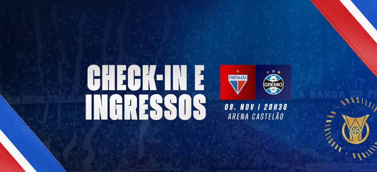 O check-in para a partida Fortaleza x Grêmio, válida pela 33ª rodada do Campeonato Brasileiro, já está disponível! Basta acessar sociofortaleza.com.br para garantir o lugar. O duelo será no domingo (9), às 20h30, na Arena Castelão.