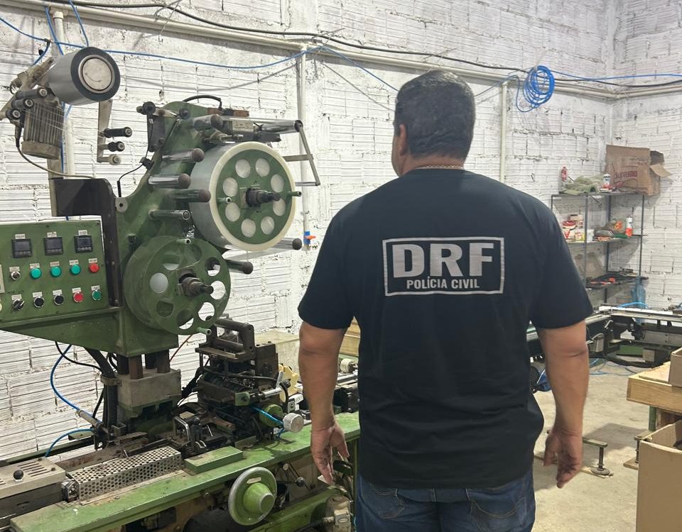 Com as informações em mãos, os policiais civis iniciaram diligências que confirmaram a denúncia. No galpão, os agentes encontraram diversos homens atuando na linha de produção. Foram apreendidos maquinários utilizados na fabricação e embalagem dos cigarros, empilhadeira, máquina exaustora, tablets, notebook, um gerador de energia elétrica e insumos como fumo, papéis para produção de maços e plásticos para lacração das embalagens. Caixas com maços de cigarros prontos para comercialização também estavam no local.