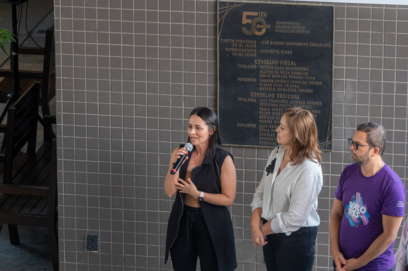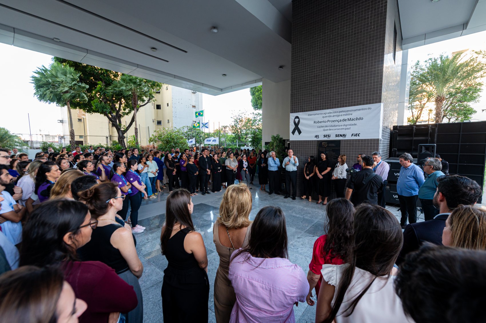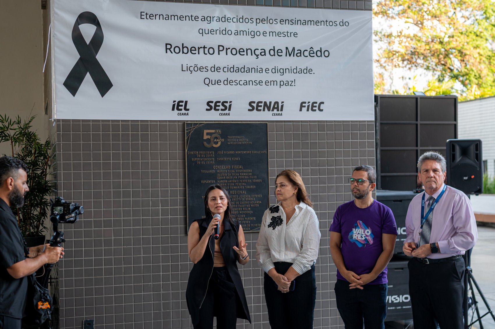 A cerimônia foi conduzida pela superintendente do IEL Ceará, Dana Nunes, que convidou os presentes a um minuto de silêncio. Em seguida, destacou a humildade e o olhar humano de Roberto Macêdo, lembrando-o como um gestor inspirador e um ser humano excepcional. “Ele foi uma das pessoas mais incríveis que conheci. Tinha um olhar verdadeiro, transmitia segurança e acreditava nas pessoas antes mesmo que elas acreditassem em si”, afirmou.