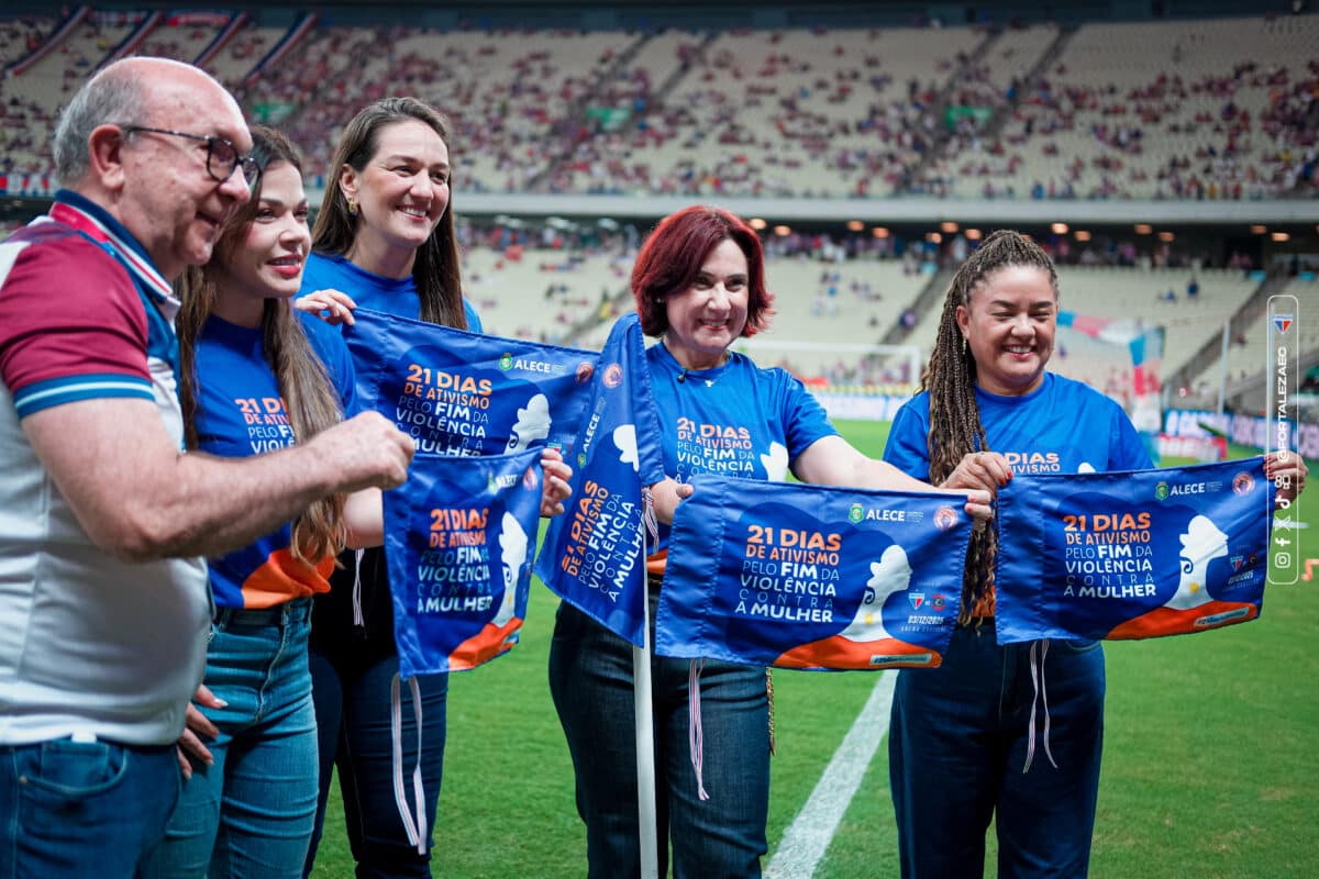 O presidente tricolor, José Rolim Machado, esteve presente para receber, além da procuradora, as deputadas Luana Régia e Emília Pessoa, que integram a Procuradoria como adjuntas, e reforçam a união do Parlamento cearense em defesa da vida, da dignidade e da liberdade de todas as mulheres. Antes do jogo iniciar, todos se reuniram para estender as bandeirinhas de escanteio com a campanha temática da Assembleia Legislativa do Ceará (Alece), referente aos 21 Dias de Ativismo pelo Fim da Violência contra a Mulher. Um patch alusivo também estampa o Manto Tricolor na noite desta quarta-feira (3).