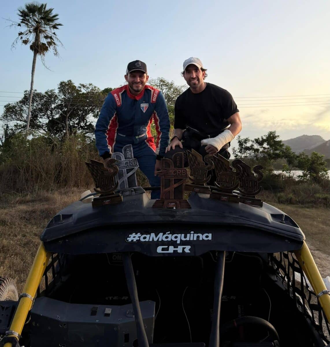 Mesmo pilotando com apenas uma das mãos, o piloto Carlos Neto, o “Baiano”, desafiou os próprios limites para completar a última etapa do Campeonato Cearense de Rally Baja (CRB) e subir ao pódio ao lado do navegador George Martins. Na final, o navegador do Fortaleza Esporte Clube encerrou a temporada como o vice-campeão na categoria UTV Double, enquanto o seu companheiro, o piloto Carlos Neto, conquistou dois títulos: o 3º lugar na UTV Pro e o 5º lugar na UTV Double, um resultado que simboliza não apenas técnica, mas também coragem e resiliência.