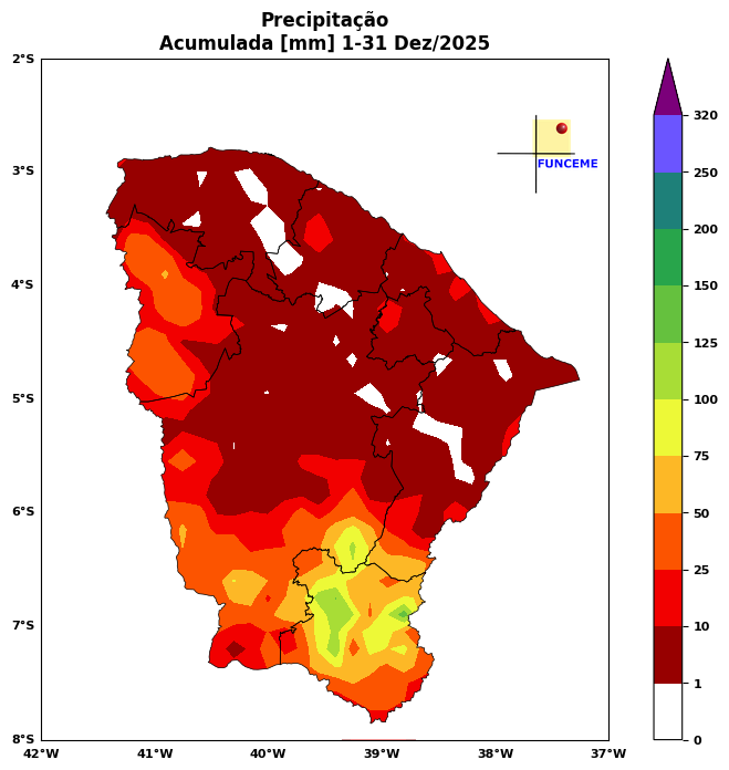 As chuvas registradas no Ceará em dezembro ficaram, de modo geral, dentro da normalidade climatológica, segundo dados da Fundação Cearense de Meteorologia e Recursos Hídricos (Funceme), embora com um desvio negativo significativo em relação à média histórica. O acumulado médio observado no estado foi de 18,9 milímetros, enquanto a normal climatológica para o mês é de 31,3 milímetros, uma redução em torno de 40%.