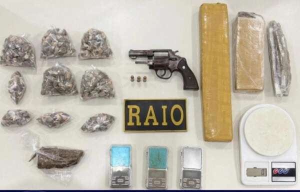 Em seguida, os militares realizaram varreduras na área e localizaram uma mochila abandonada. No interior, encontraram um revólver calibre .38 com quatro munições, duas facas, quatro balanças de precisão e 2,05 kg de maconha.
