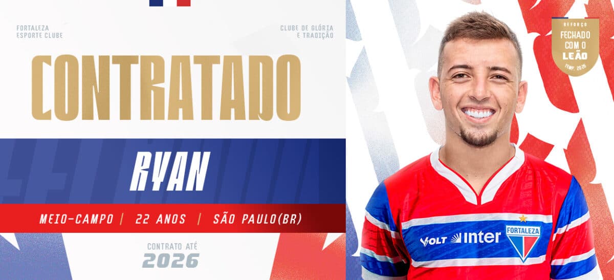 O Fortaleza Esporte Clube comunica a contratação por empréstimo do meio-campista Ryan junto ao Sport Club Corinthians Paulista até o fim de 2026.