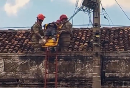 Homem sofre choque elétrico em telhado e é resgatado por bombeiros em Massapê, no Ceará Segundo o Corpo de Bombeiros, o homem ficou ferido e preso a cerca de 7 metros de altura, sem conseguir descer por meios próprios.