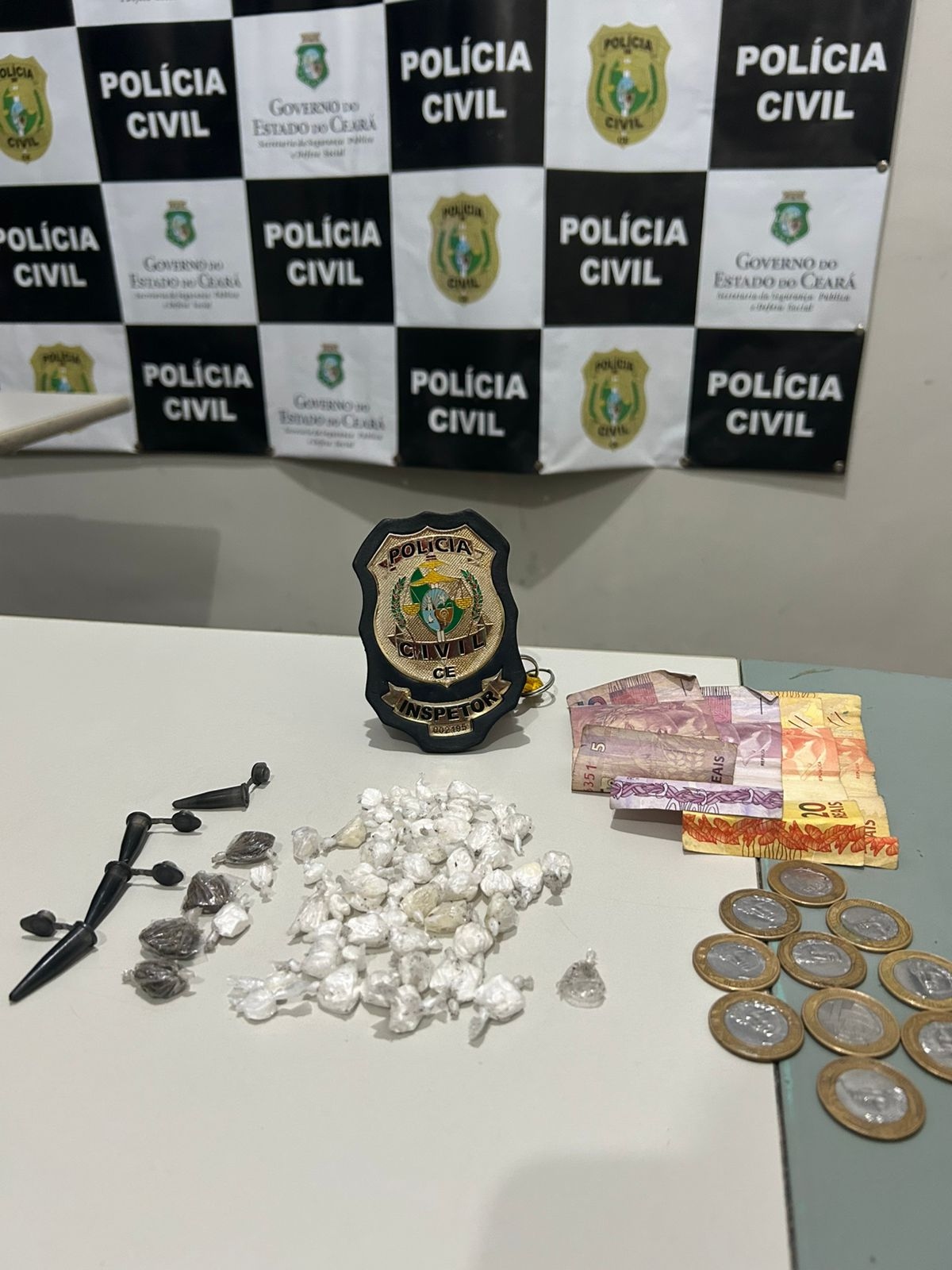 Uma equipe da Polícia Civil do Ceará dirigiu-se ao local da denúncia e avistou o suspeito e mais dois indivíduos em tratativas de comercialização dos ilícitos. Ao perceber a aproximação das forças de segurança, o suspeito tentou fugir, mas logo foi capturado.