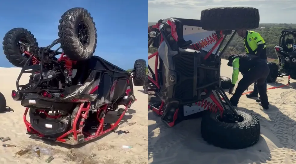Policial militar fica gravemente ferido após acidente com quadriciclo em praia no Ceará Conforme pessoas que acompanham o caso no hospital, o policial chegou a ser estabilizado, mas o estado de saúde é considerado gravíssimo