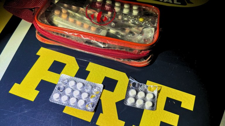 No entanto, durante a vistoria no interior do veículo, os policiais encontraram uma bolsa sob o banco do caminhão contendo diversas cartelas de medicamentos. Entre os itens apreendidos estavam comprimidos de anfetamina, totalizando 15 unidades.
