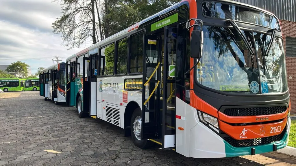 Confira as primeiras unidades do novo modelo de ônibus que serão entregues em Fortaleza Capital recebeu mais de 20 ônibus com identidade visual renovada e recursos de acessibilidade