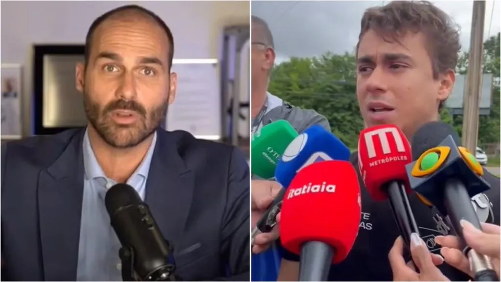 Nikolas Ferreira e Eduardo Bolsonaro trocam acusações em entrevistas sobre apoio a Flávio Bolsonaro Deputado rebate fala sobre apoio a Flávio Bolsonaro e sai em defesa de Michelle após entrevista ao SBT News